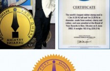 Рекорд был официально зафиксирован. 26 августа 2004 года награда нашла своего героя в лице автора. Идея принадлежит Владимиру Спиваковскому, как собственно, и исполнение в материале. В Книге рекордов Гиннеса имя этого удивительного человека упоминается дважды: в контексте означенного рекорда и как обладателя самой обширной и впечатляющей в мире коллекции пирамид. Печать-рекордсмен участвует в Параде брендов, проводящегося ежегодно в рамках церемонии награждения лучших украинских производителей по итогам конкурса Бренд года Украины. Миссия ее важна и почетна — поставить оттиск на стяге компании-победителя. Для этого к процессу привлекают эвакуатор.