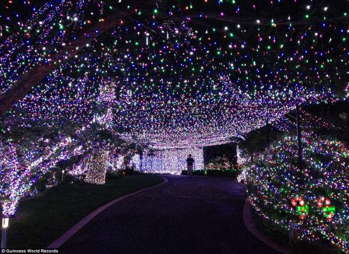 Сейчас в Книге рекордов Гиннеса самый яркий новогодний рекорд числится за семьей адвоката Ричардса (Richards) из города Канберра в Австралии. Перед рождеством 2013 г. они развесили более 29 км рождественских гирлянд. В общей сложности на них было 502165 лампочек.