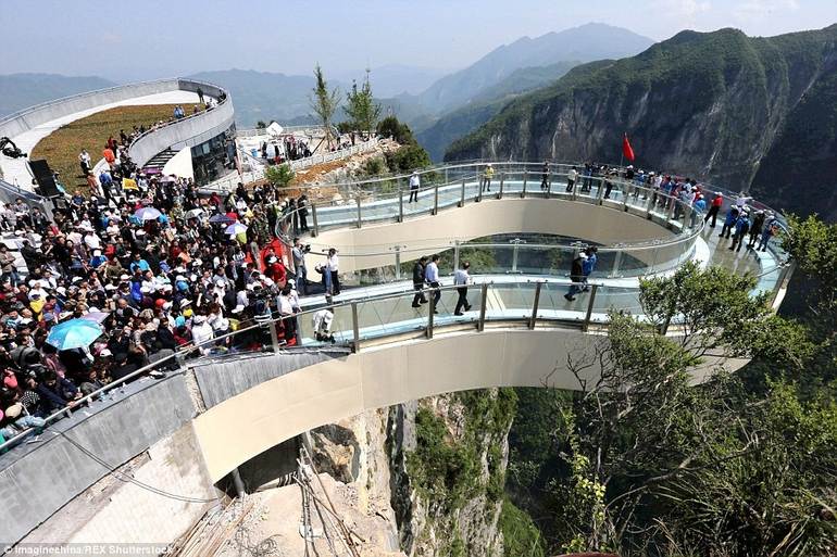Прочность конструкции доказывает и тот факт, что на мосту могут одновременно находиться до двухсот человек. Чтобы на протяжении 30 минут наслаждаться прекрасным панорамным видом, туристам требуется заплатить за вход 60 юаней (это примерно 9,6 долларов).