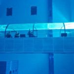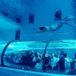 Как видно на фото, в бассейне также установлены прозрачные галереи, сквозь стекло которых можно наблюдать за дайверами в действии, что также доставляет зрителям немало удовольствия.